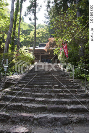 四国霊場第36番札所「青龍寺」の石段を上るお遍路さん