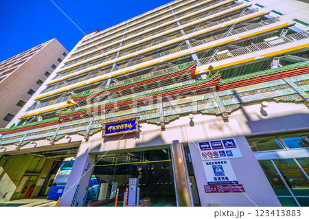 日本の横浜都市景観 横浜中華街 開港通にある中華街停車場などを望む
