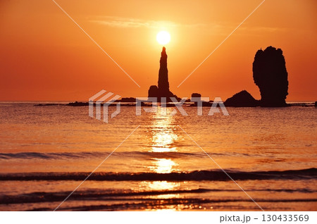 Sakurai Futamigaura torii in Itoshima, Fukuoka which in front of Married Couple Rocks