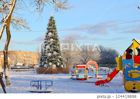 Experience a Winter Wonderland A Snowy Playground Filled with a Stunning Christmas Tree