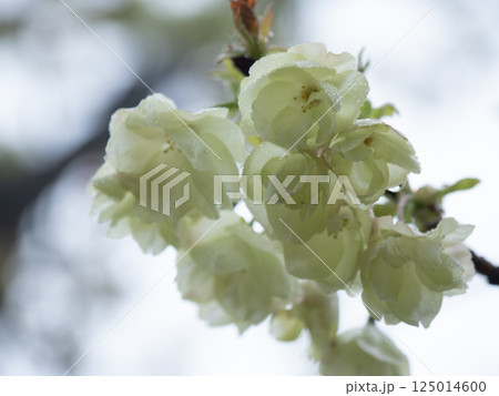 雨に濡れるウコン桜の花