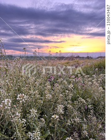 ナズナとホトケノザと夕焼け