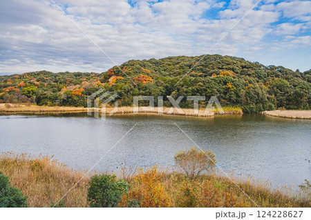 磐田市にある秋の桶ヶ谷沼の森林の風景(静岡県)