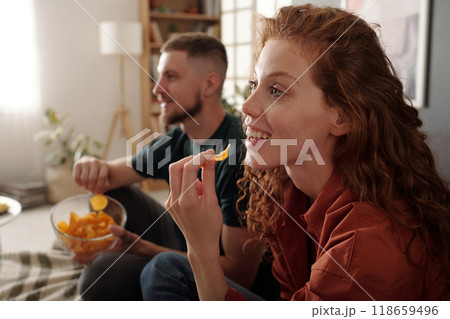 Putting crusty potato chips into mouth