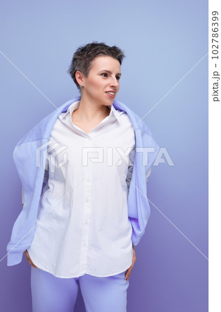 portrait of self-sufficient charismatic young millennial woman with short haircut
