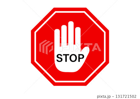 Red Octagon Stop Sign with White Hand Symbol. Stop Hand Symbol for Prohibited Activities.