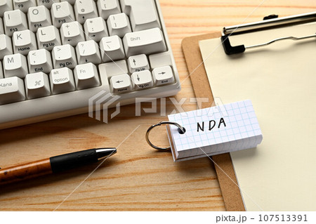 デスクにペンやノートとともに、ダミーの英語の相互秘密保持契約が置かれている