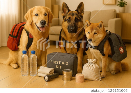 【防災わんこ隊】ゴールデンレトリバー・豆柴・シェパードが協力して防災対策!かわいくて頼れる避難準備の