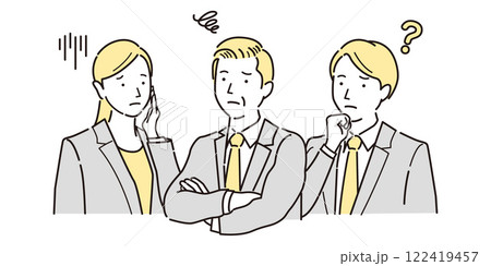 考え悩む男女のビジネスパーソンのイラスト