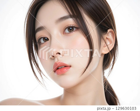 Korean woman with radiant skin showcasing natural beauty and elegance in a soft light portrait