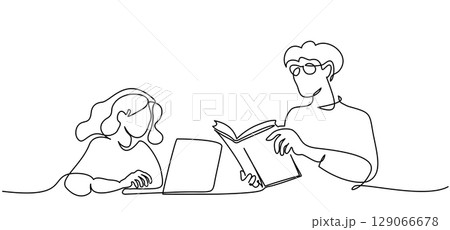 Single one line drawing boy lying on back reading fiction story book near bookshelf. Read slowly to enjoy the storyline. Hobby reading. Very good habit. Continuous line design graphic illustration