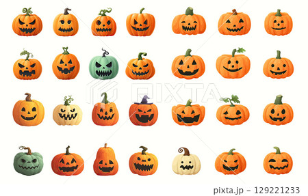 set of orange pumpkin emojis for Halloween on white background. Holiday stickers element of autumn holiday design for Halloween