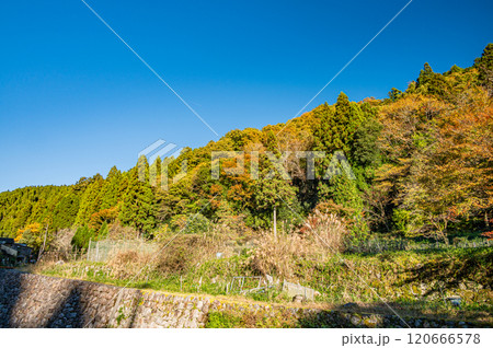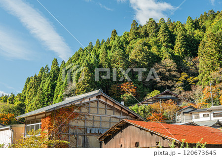 秋の鞍馬集落風景 紅葉した木々 京都市