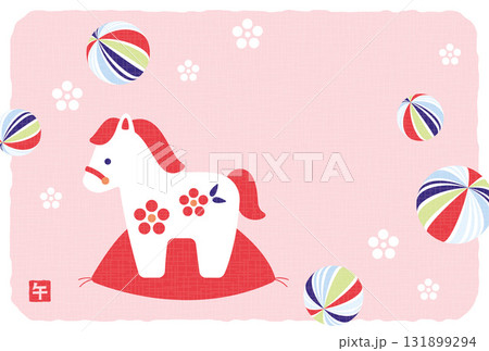 馬(午年)の置物と飴玉の年賀状向け背景イラスト