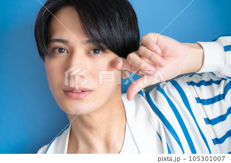 若い男性のお洒落な美容や透明感のあるビューティーイメージクローズアップ
