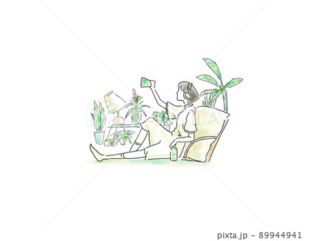 音楽を聴きながら楽譜を読む少女の幻想イラスト