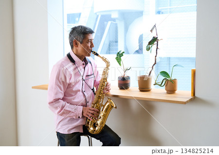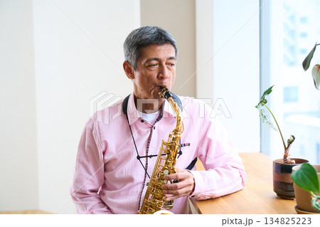 サックスを吹く男性 シニア