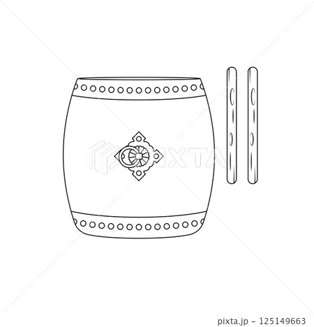 Taiko Drum Outline Icon Illustration on White Background
