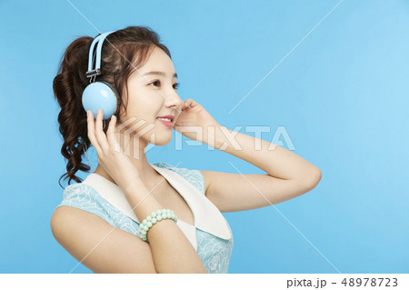 女性 ヘッドフォン 音楽 ミュージック ライフスタイル 白バック
