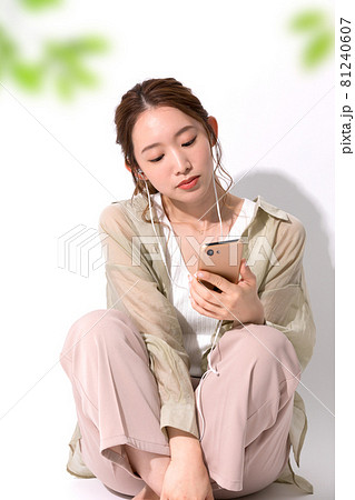 女性 リビング スマホ ミュージック ライフスタイル ニューノーマル