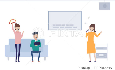 カラオケボックスで楽しく歌って盛り上がる若い男女
