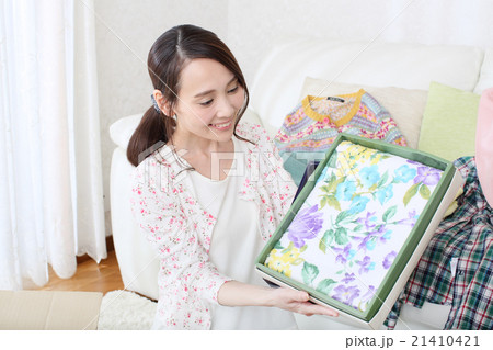 風呂敷包みの箱を持つシニア女性 ポーズ