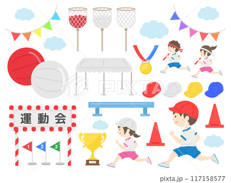 運動会のイラストセット 学校行事 ベクター素材