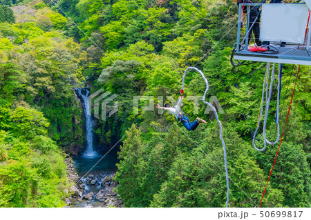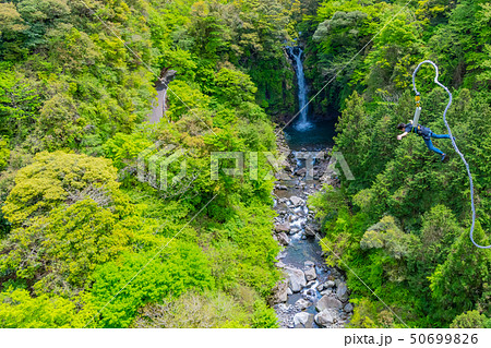 静岡県富士市 須津川渓谷のバンジージャンプ 春 新緑