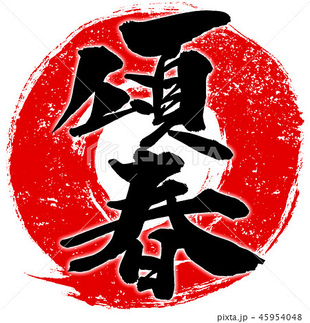 「頌春」年賀状用 朱印ハンコ調筆文字デザイン素材