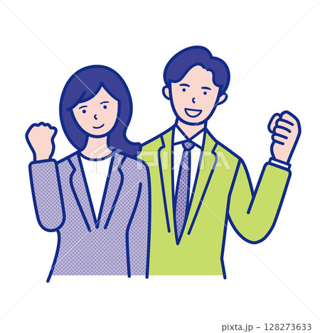 ガッツポーズをする男女社員