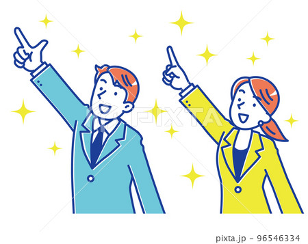 キラキラ輝く未来を指差しする男女のビジネスマン セット