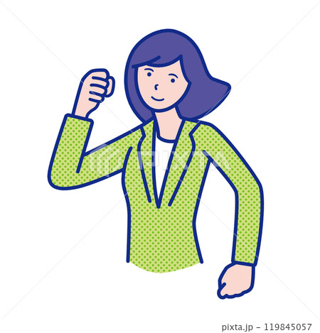 ガッツポーズをする女性の上半身イラスト素材