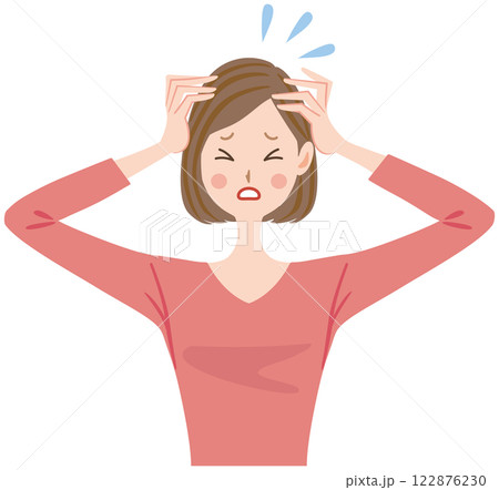 頭を抱える女性のイラスト 頭痛 パニック