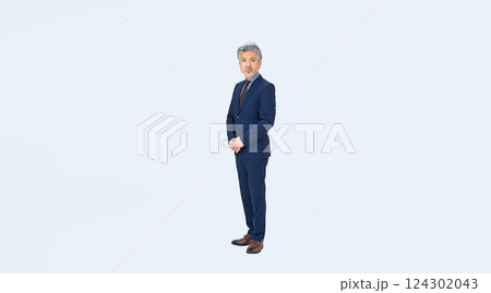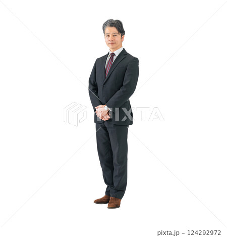 斜めに立つミドルエイジ男性ビジネスパーソンの全身写真