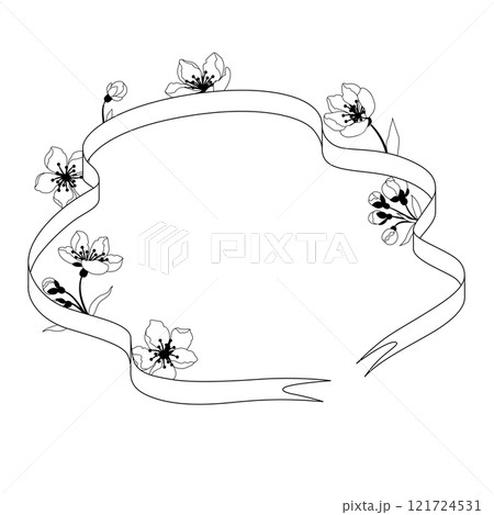 Ribbon with spring flowers. Apple, sakura or cherry blossom. Beautiful decorative blooming plants.