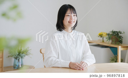 カメラ目線で会話する女子学生 ビデオ通話 オンライン授業