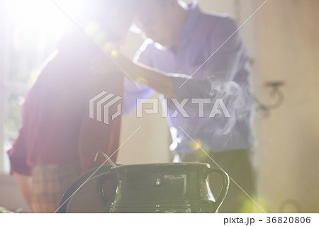 料理をするシニア夫婦