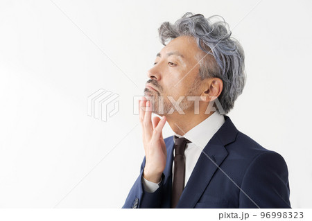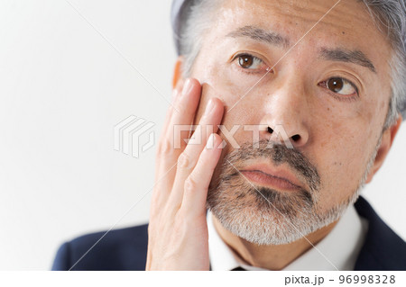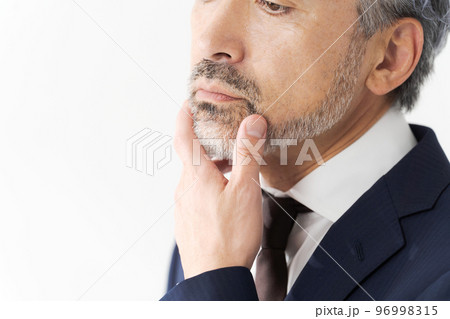 ヒゲを触るシニア男性