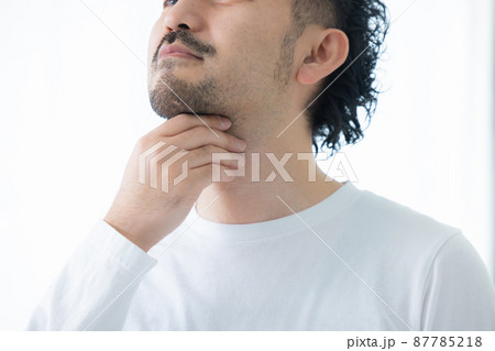 顎を触る男性 剃り残し 髭