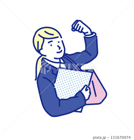 若いビジネスウーマンのシンプルなカラーアイコンイラストセット素材