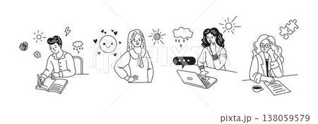 Monochrome Characters Expressing Emotions in Line Art