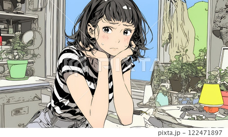 內向害羞的女孩插圖-可愛的臉部表情