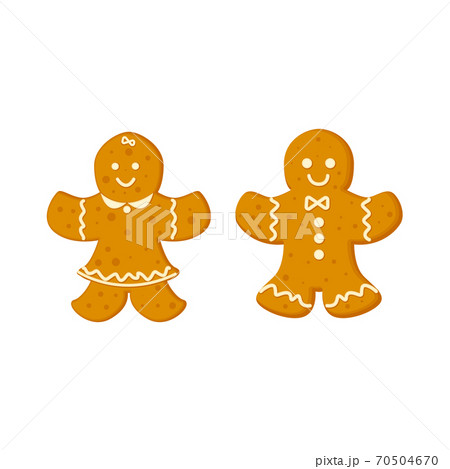 Hand drawn gingerbread man isolated on a white background. Human-shaped cookies with colored glaze. Festive gingerbread man Vector illustration in flat style.