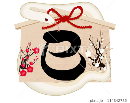 筆文字で書かれた巳文字の絵馬(年賀状素材)
