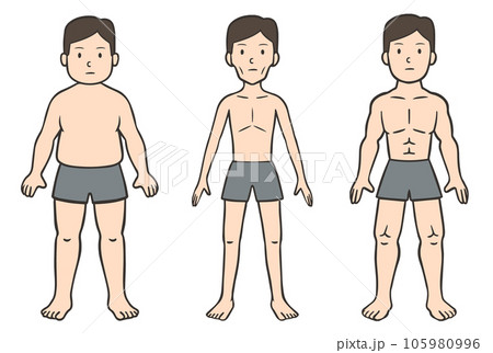 クレッチマーの性格類型論、肥満、細身、筋肉質の男性