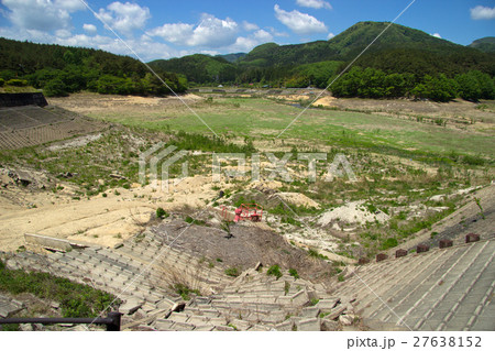 水が抜けた藤沼湖