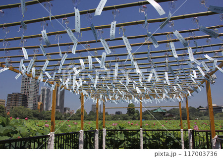 風鈴の音を浴びて涼を楽しむ。ハスの花は咲き誇り別世界に誘う不忍池の初夏の風物詩