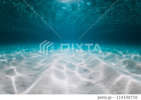 Tropical ocean with white sandy sea bottom underwater. Sea texture background