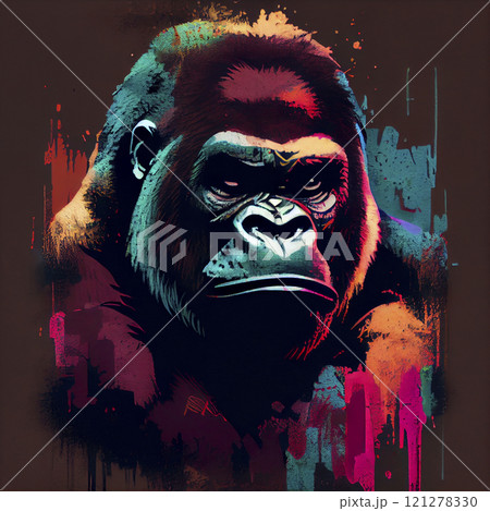 Portrait of wild gorilla with colorful and abstract. Printable design for wall art. gorilla creative