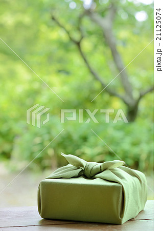 お中元イメージ 風呂敷包み 庭背景